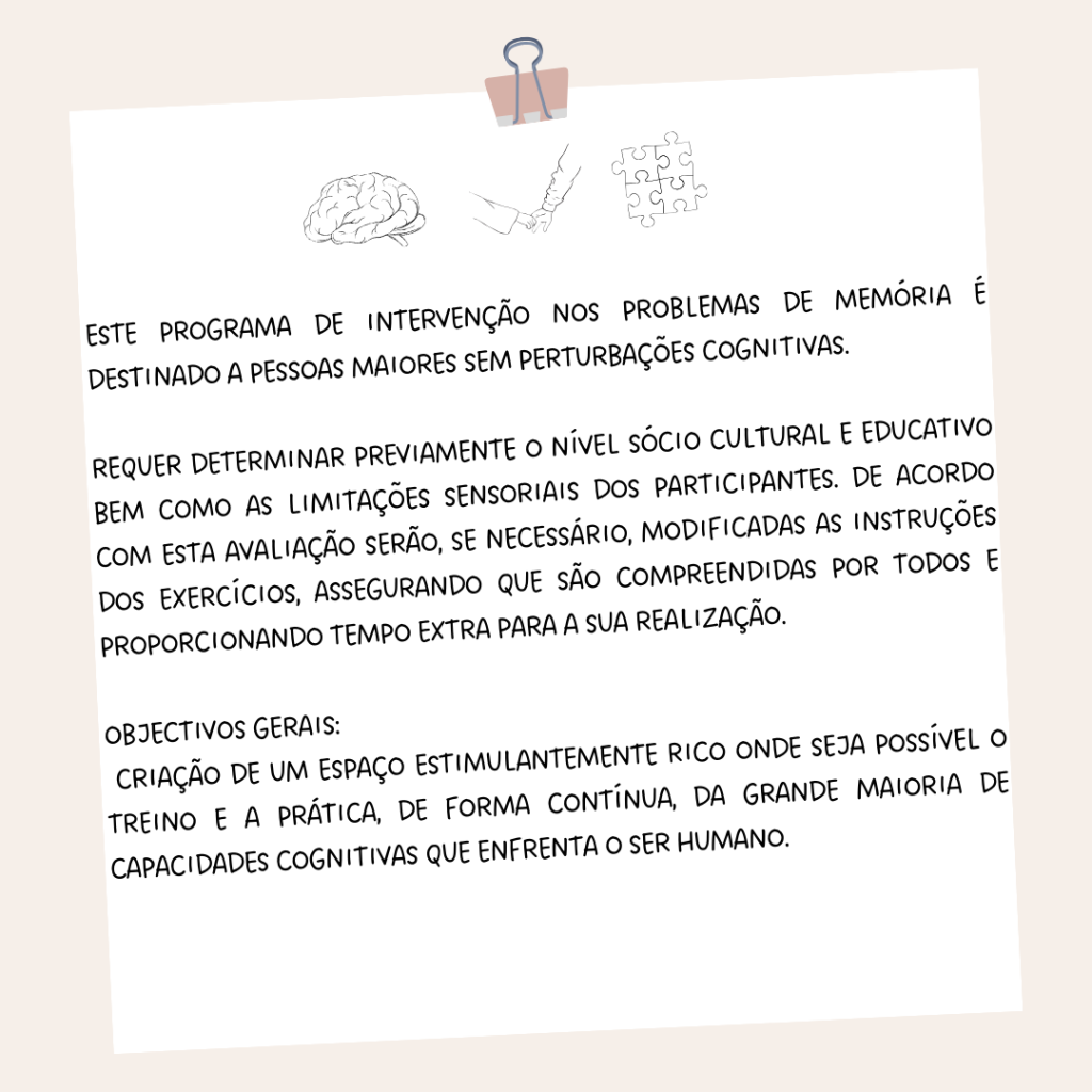 Desenvolvi o programa de Programa de Estimulação Cognitiva disponível na Clínica Medigaia.